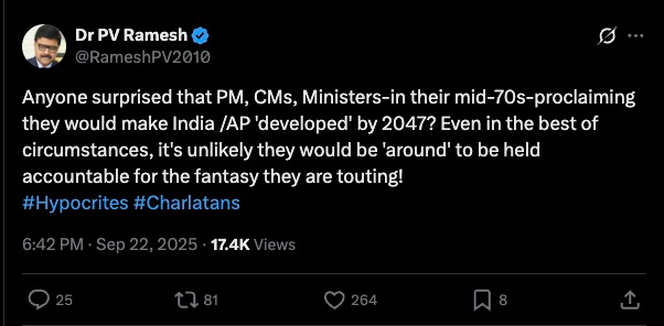 However, vision provides a broad outline of objectives. Over many years, trends, developments, innovations, and other changes can accelerate progress or redirect it entirely. Holding someone accountable for their vision seems amateurish given the challenges in democratic setup – leaders should be judged on their efforts and progress toward the vision, not on whether they personally achieve every stated goal. Even more childish is expecting leaders to limit their dreams to what they can personally witness in their lifetimes.