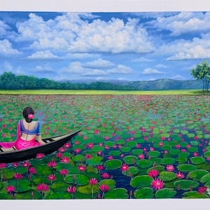 ఎప్పటిలానే ఆ రోజూ కొలనులోకి దూకాడు. గట్టు మీద నుండి ఎవరో కేకలు పెడుతుంటే తలెత్తి చూశాడు. బుట్టబొమ్మలా నిలబడ్డ ఆమెని చూశాడు. పక్కనే ఉన్న రెండు అరచేతులు పట్టేంత ఉన్న కలువను చూపించి తెంచివ్వమని కోరుతుంది. మాములుగా అయితే మార్కెట్లో ఆ పువ్వుకి వంద తక్కువ రాదు. కానీ ఆలోచించకుండా ఆ పువ్వుని కోసిచ్చాడు. ఆమె మెడలోని లాకెట్ కూడా అచ్చం ఆ కొలను లాగానే కెంపులు, పచ్చలతో మెరిసిపోతుందని మొదటిసారిగా అనుకున్నాడు. ఆమె చిరునవ్వు ముందు ఆ పువ్వు ఎందుకూ పనికిరాదనుకున్నాడు. తెల్లటి కారులో ఆమె వెళ్లిపోతుంటే, లక్ష్మీదేవి చేతిలో తామరను అలంకరించుకుని, ఐరావతాన్ని ఎక్కి వెళ్తున్నట్టుగా ఉంది. ఇంత సంతోషం ఎన్నడూ అతనికి కలగలేదు. ఈ భావనే ఏదో తీయగా ఉందని ఎగిరాడు. అక్కడ పువ్వులు ఇప్పుడు విస్తరాకులోని మెతుకుల్లా కాక, ఆమె అరచేతుల్లా ఆనుతున్నాయి.